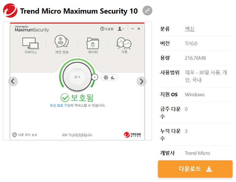 Trend Micro Maximum Security 10 무료 다운로드▶